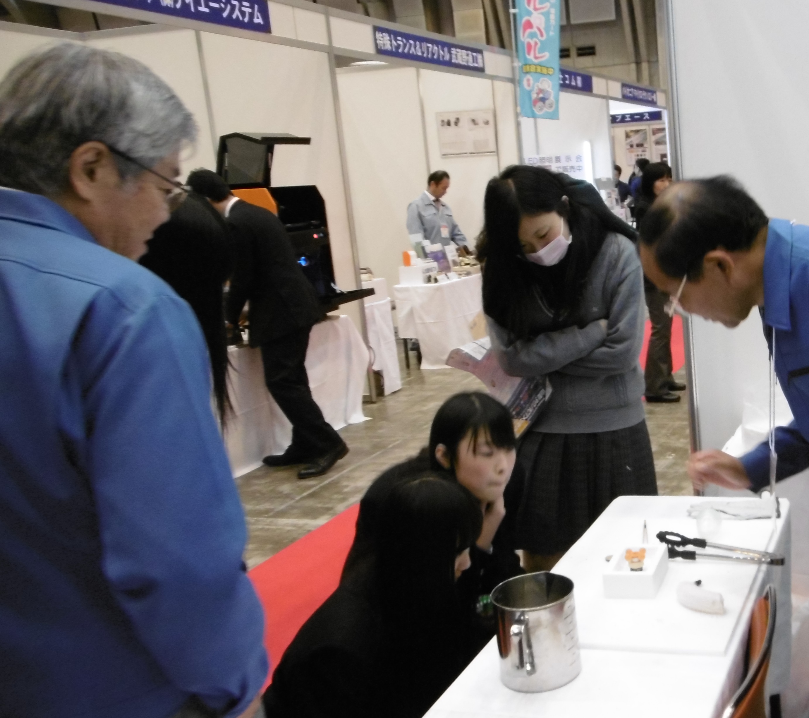今回は、学生・一般の方向けに「真空」「熱」「色」をテーマにした実験コーナーを設け、多くの方にお立ち寄りいただきました。