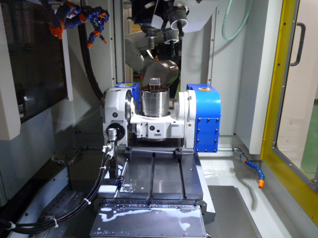 同時5軸制御加工機と多関節ロボットの接続による、手のひらサイズ部品の安定加工と高い生産性を実現しました。